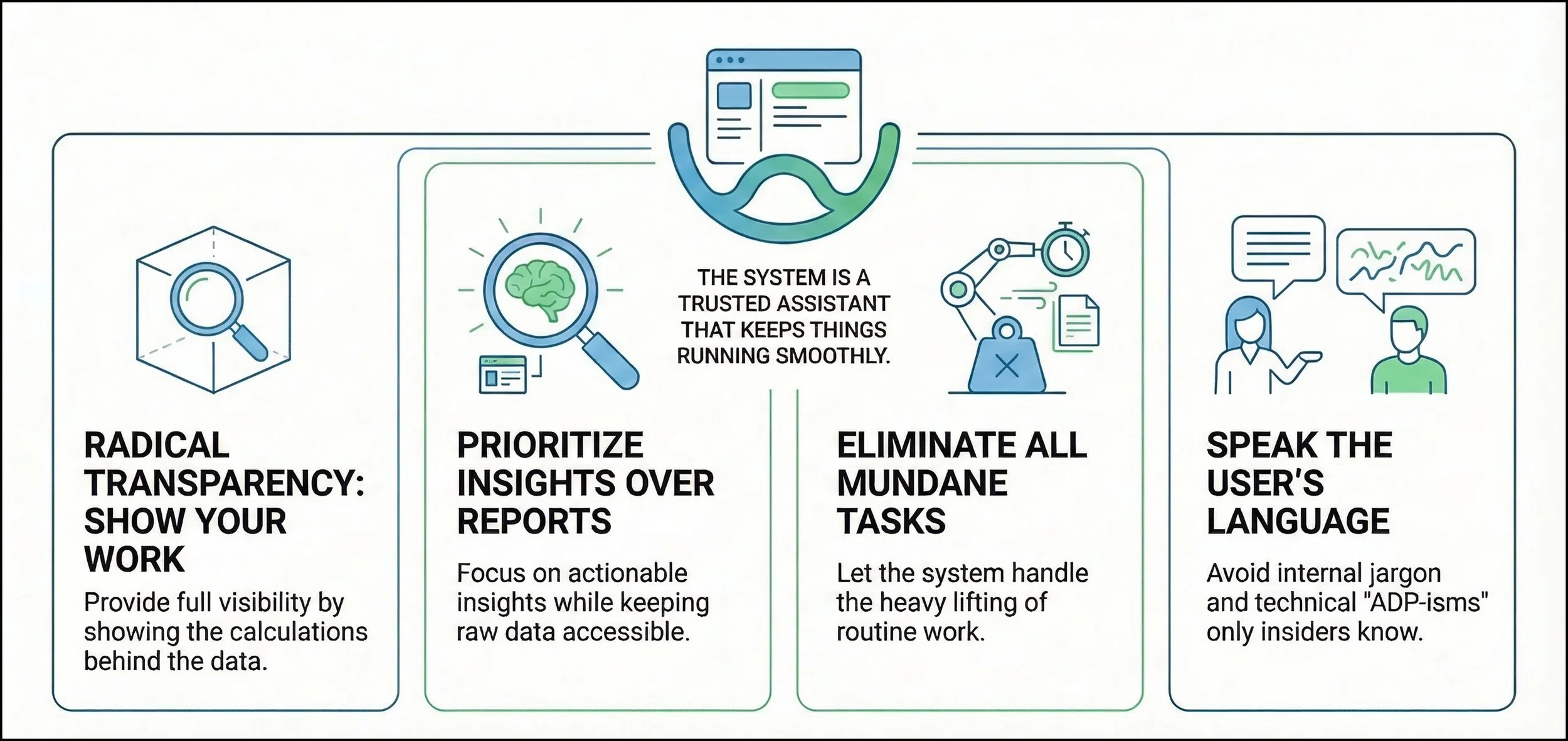 The Challenge: For four decades, payroll at ADP relied on complex, batch-processed mainframe computations. The process was notoriously labor-intensive, stressful, and opaque for users. My role on the Payroll Innovation UX team was to collaborate to modernize this engine and completely humanize the experience, shifting the system from a rigid, clunky tool depending on workarounds, into a transparent, "trusted assistant."