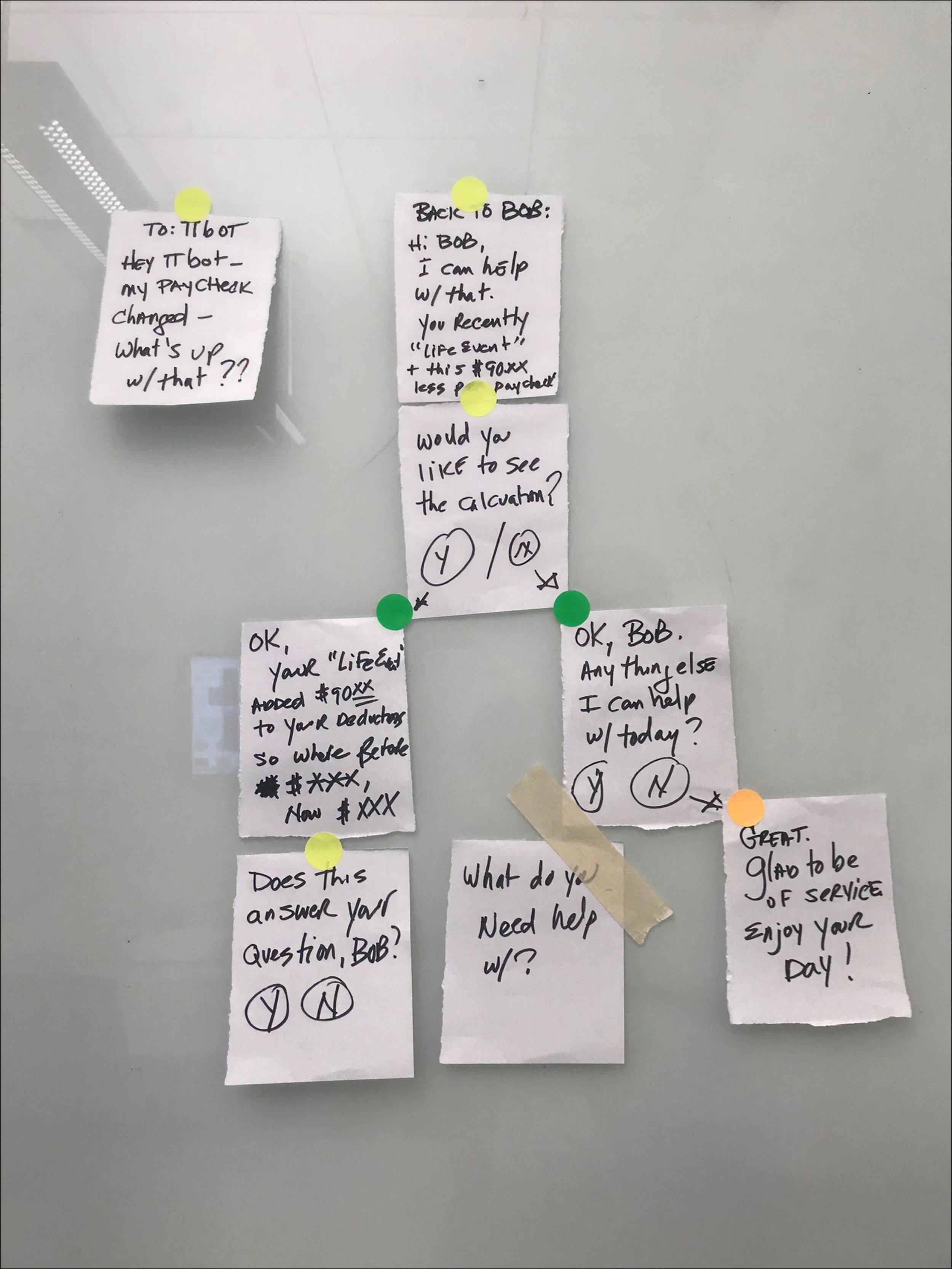 Methodology: I utilized low-fidelity-prototyping—in the form of three text-based, conversational scripts—to conduct generative research sessions with in-house payroll practitioners and subject matter experts.