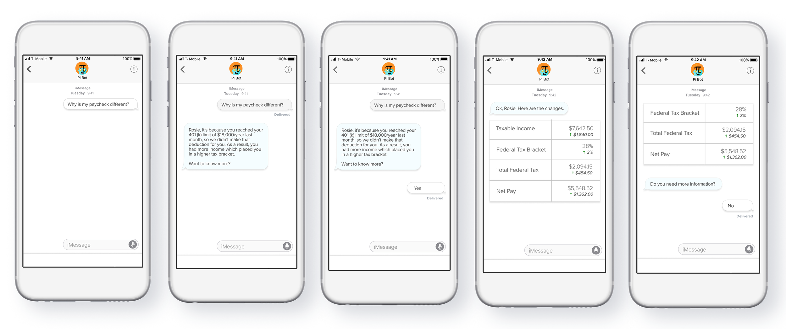 A MyADP Chatbot, that provides real-time support to employees. Taking the burden off practitioners, PiBot proactively surfaces customized insights when an employee’s paycheck changes and gives details into the calculation.