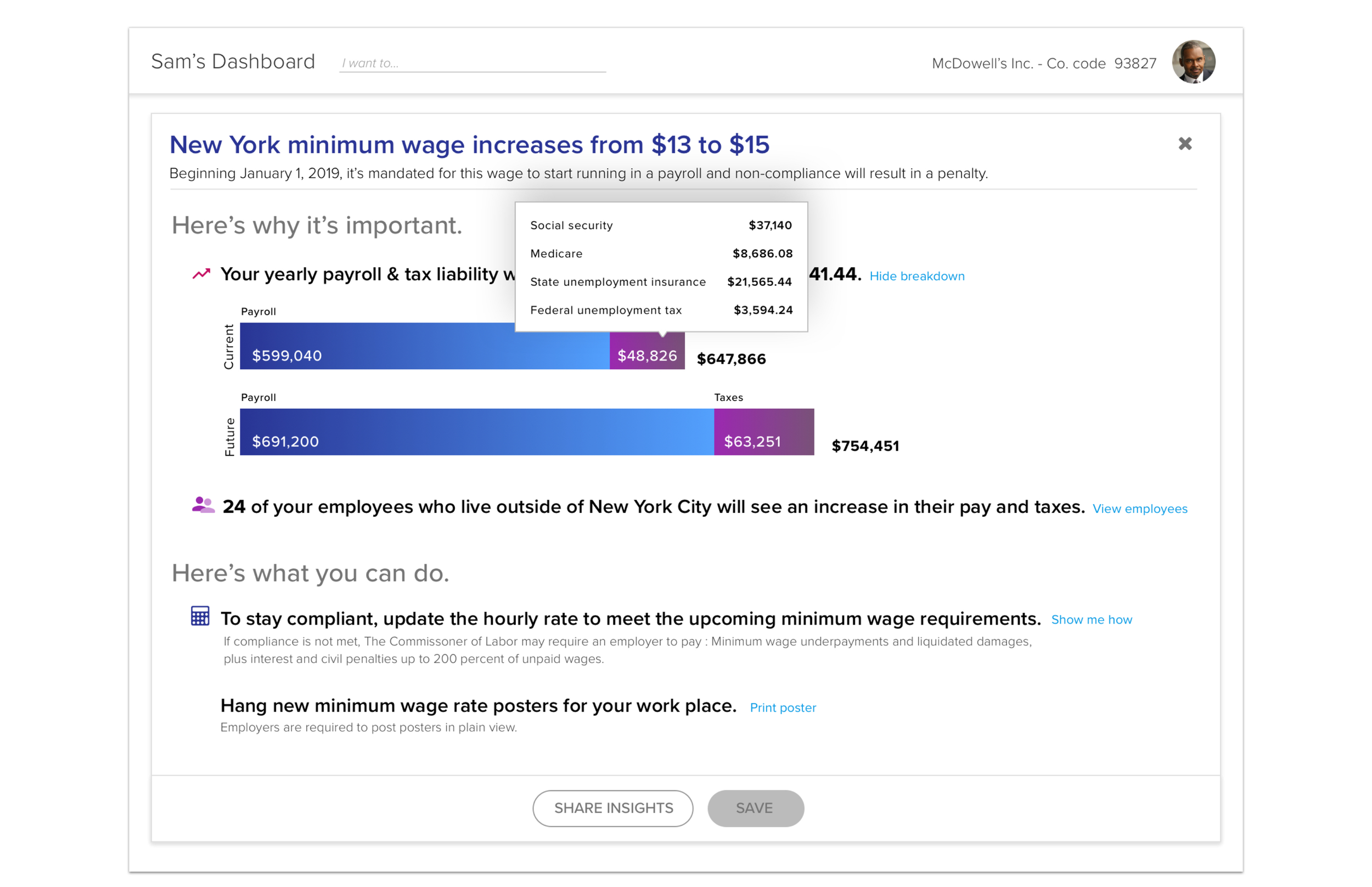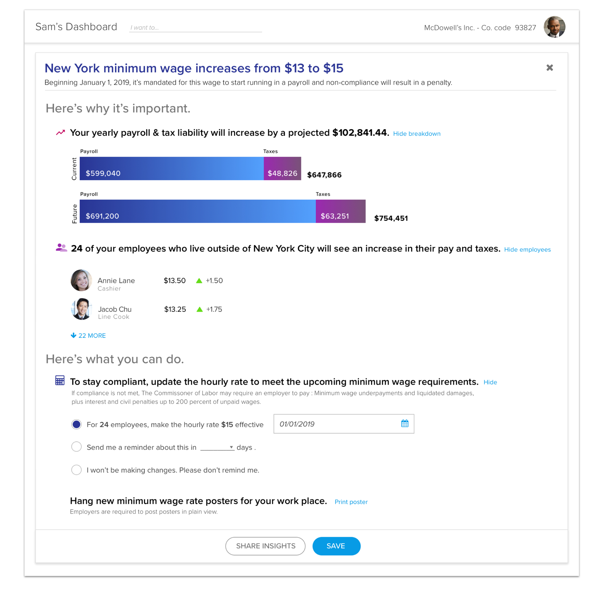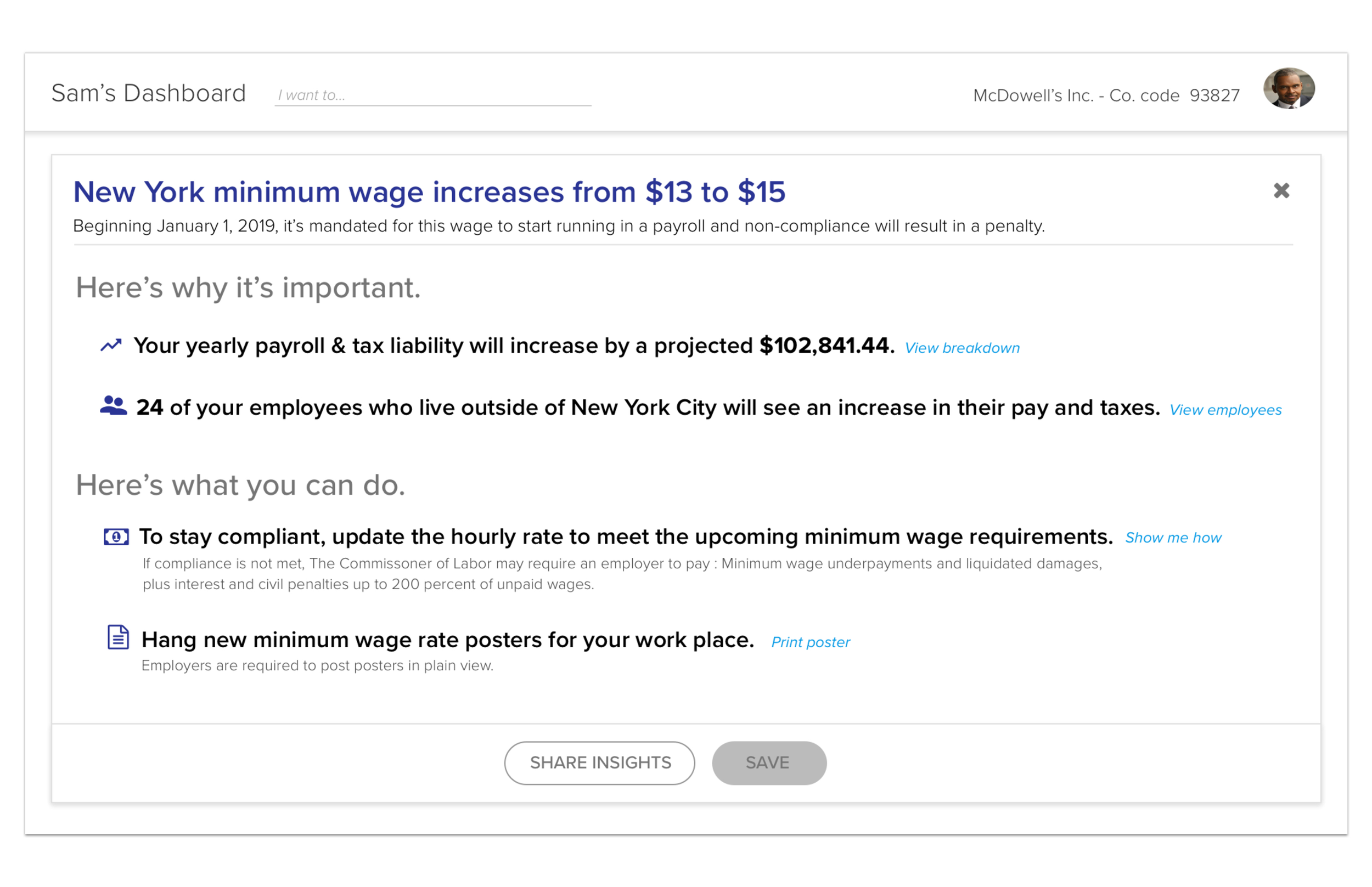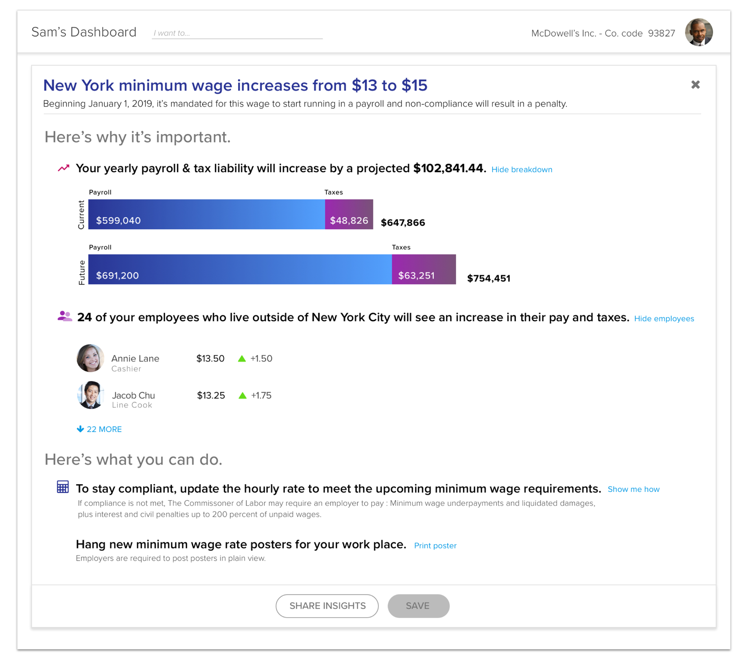 It’s Monday morning. Sam logs into his dashboard to check routine payroll and is greeted by a high-priority alert: New York is raising the minimum wage from $13 to $15. For a business like McDowell’s, this isn’t just a policy change-it’s a major financial shift.
