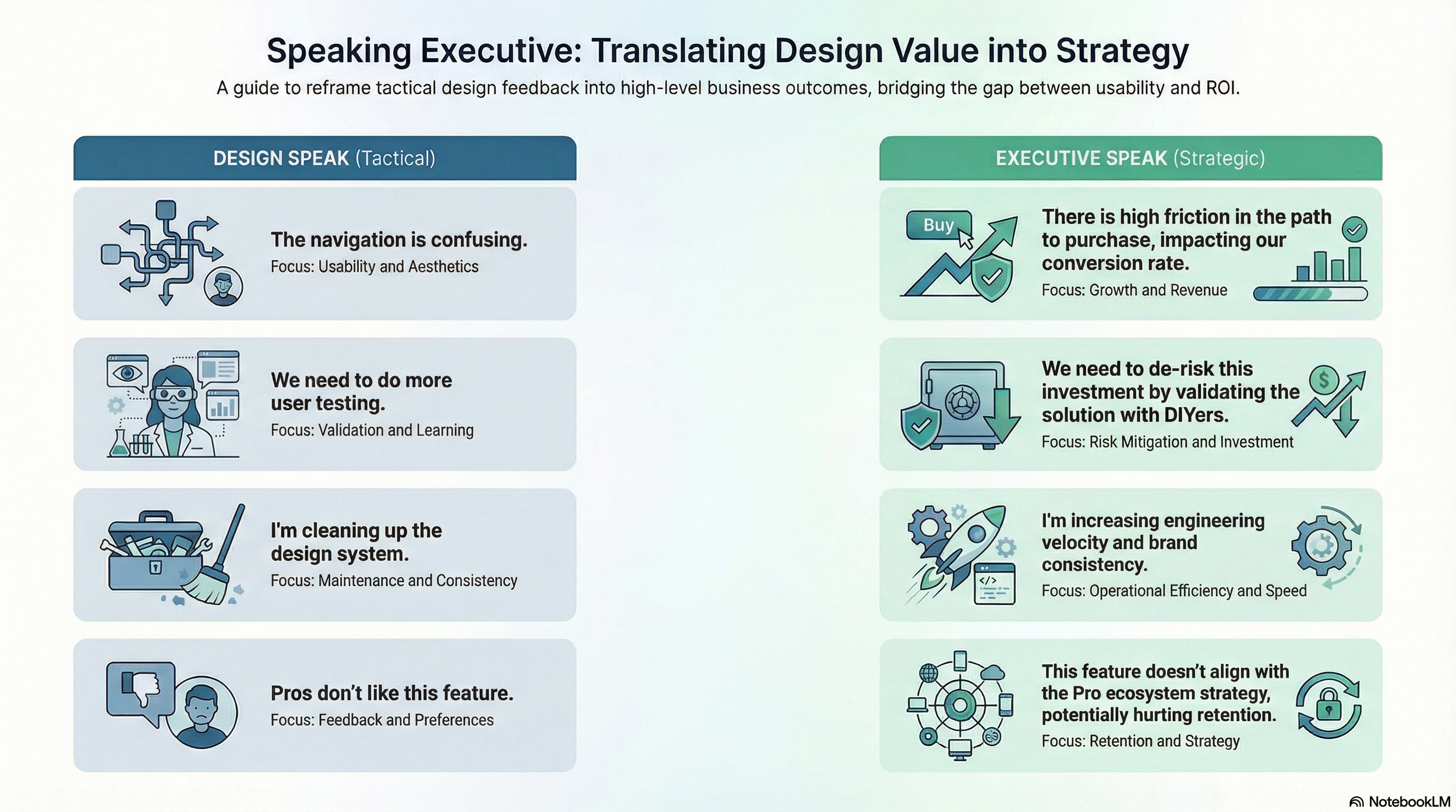 Even the most talented designers can feel like “order takers” when they lose sight of the “why.” At The Home Depot, the Voice of the Associate (VOA) survey revealed a strategic blind spot: Individual Contributors (IC’s) across 16+ Enterprise UX squads struggled to articulate how their daily tasks, research and design work laddered up to the company’s goals. Without this “Line of Sight,” associates couldn’t advocate for the ROI of their work, leading to friction with partners and a cap on UX maturity.