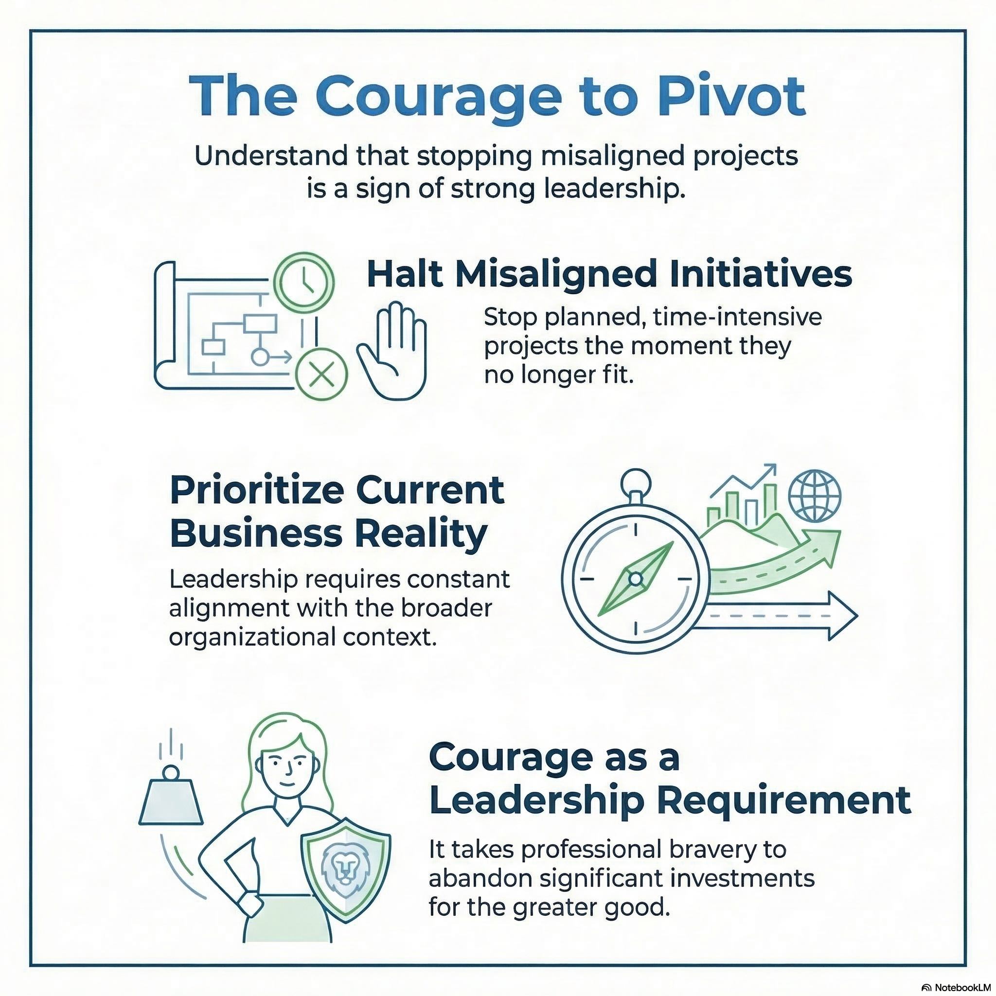 The Lesson: Strong leadership requires the courage to halt planned, time-intensive initiatives the moment they no longer align with the broader business reality.